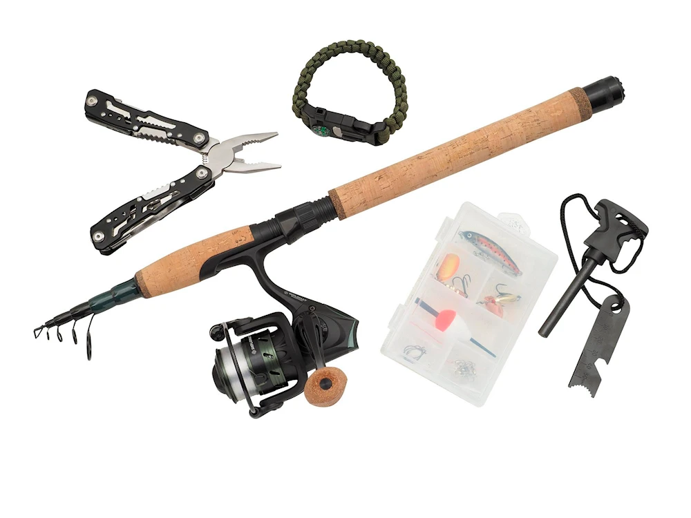 Diplomat Wilderness Survival från Abu Garcia är ett smart och praktiskt set som innehåller allt du behöver för att fånga och tillaga fisk i naturen. Det kompakta 24T Carbon-spöet är lätt och pålitligt, medan rullen med aluminiumspole och förspolad monolina levererar jämn prestanda. I kitet finns en tackelbox med beten, flöte, krokar och lekande, samt verktyg för överlevnad som eldstål, multitool med 10 funktioner och ett paracord-armband med inbyggd kompass, visselpipa och rep. Allt är snyggt packat i en stark och lättanvänd tub.