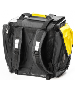 Ett bärsystem för ryggen med två D-ringar och en för handbärning vid korta förflyttningar. Botten är täckt med vattentätt material så att boxen inte drar in vatten i den nedre delen.