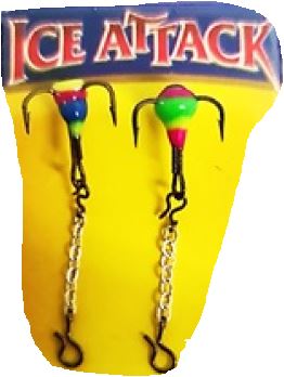 Två stycken kedjekrokar med trekrok, pimpelkedja och snapper.
