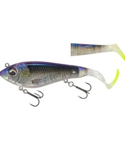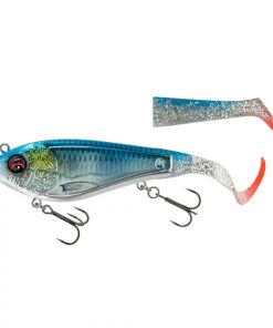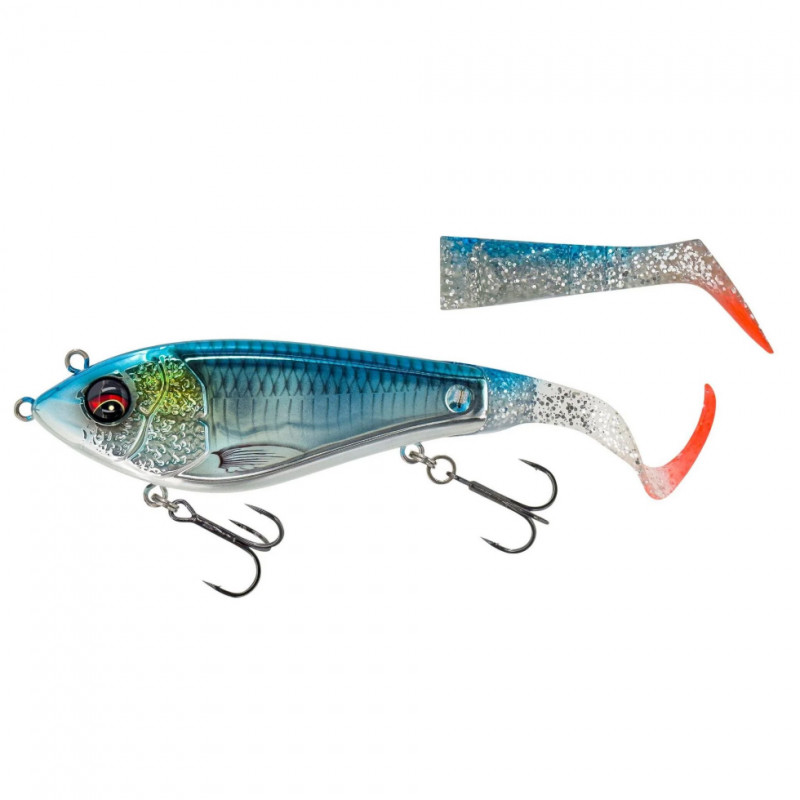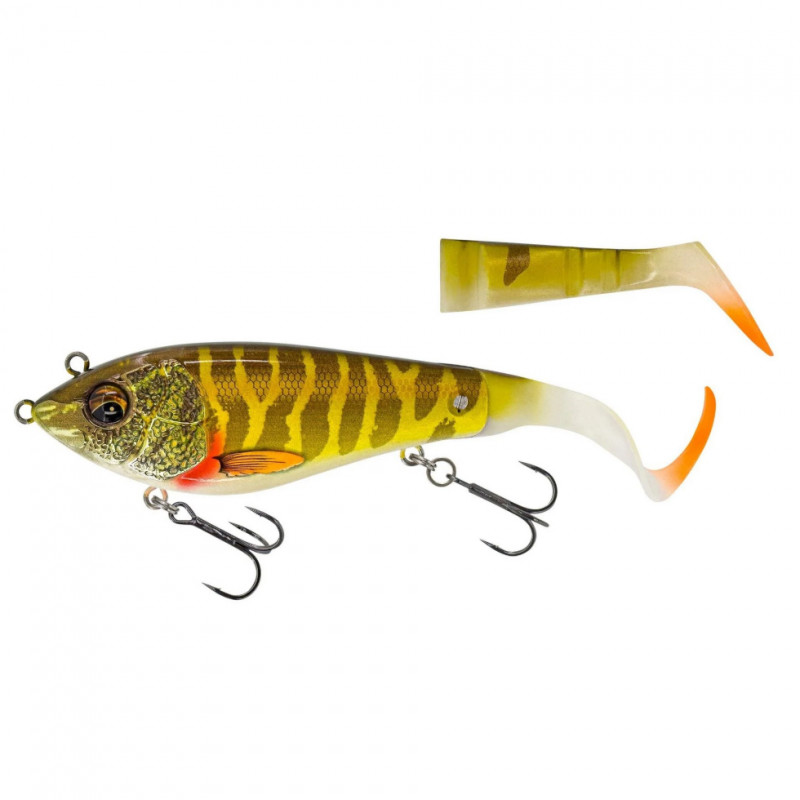 Ett fantastiskt hybridbete med en imponerande, intensiv kicking aktion från paddelsvansen och en galen glidrörelse från mini-curl-svansen. De två fästpunkterna gör att du kan använda betet på allt från supergrundt till medeldjupt vatten. Det unika Cross Jaw Lock Tail-systemet håller svansarna på plats och gör det möjligt att snabbt och enkelt byta svans eller ändra svansens rörelseriktning.