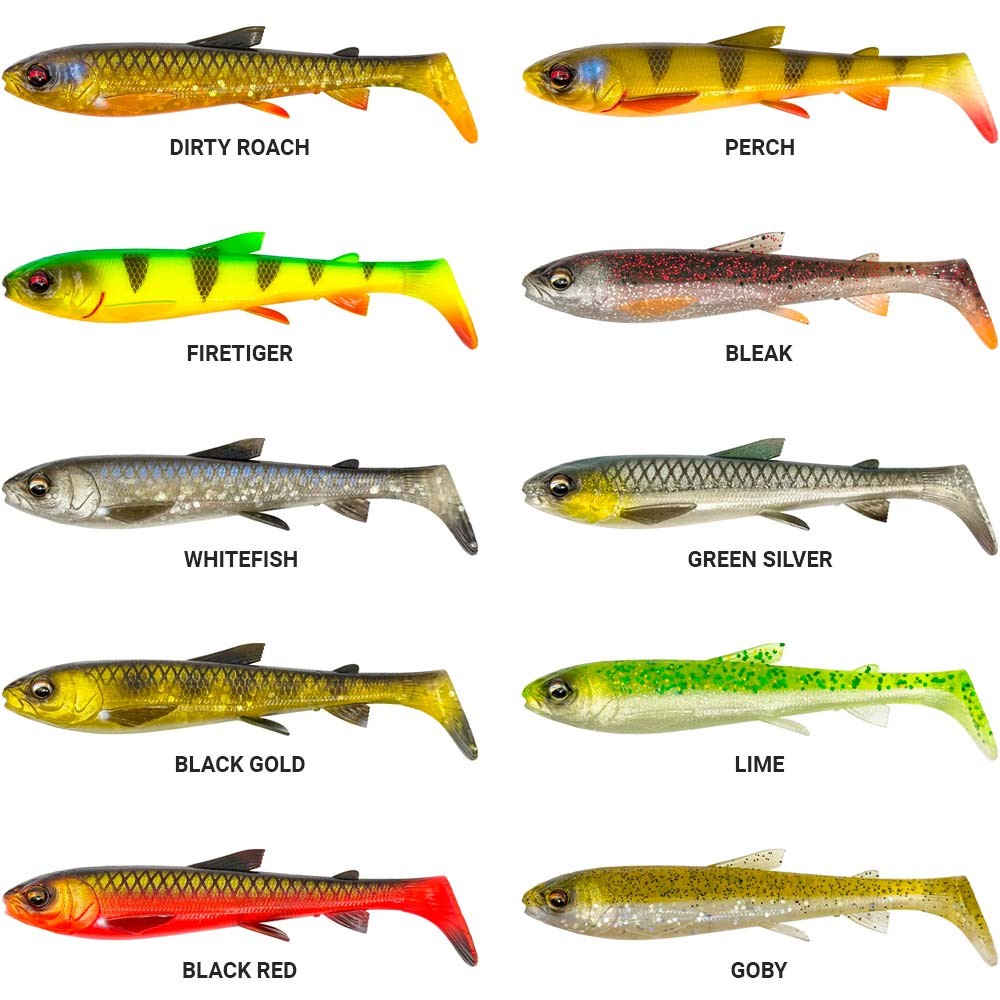 De ledade och superrealistiska fenorna ger en fantastisk sekundär rörelse till den stora sparkande paddelstjärten, som också håller en högljudd rasselkammare för extra attraktion. Tillverkad av ett supermjukt PVC-material med fantastiska färger och en doft som utlöser hugg.