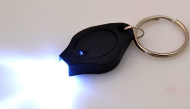 Den är utrustad med en nyckelring, vilket gör den enkel att fästa på nyckelknippan eller fiskeredskap.